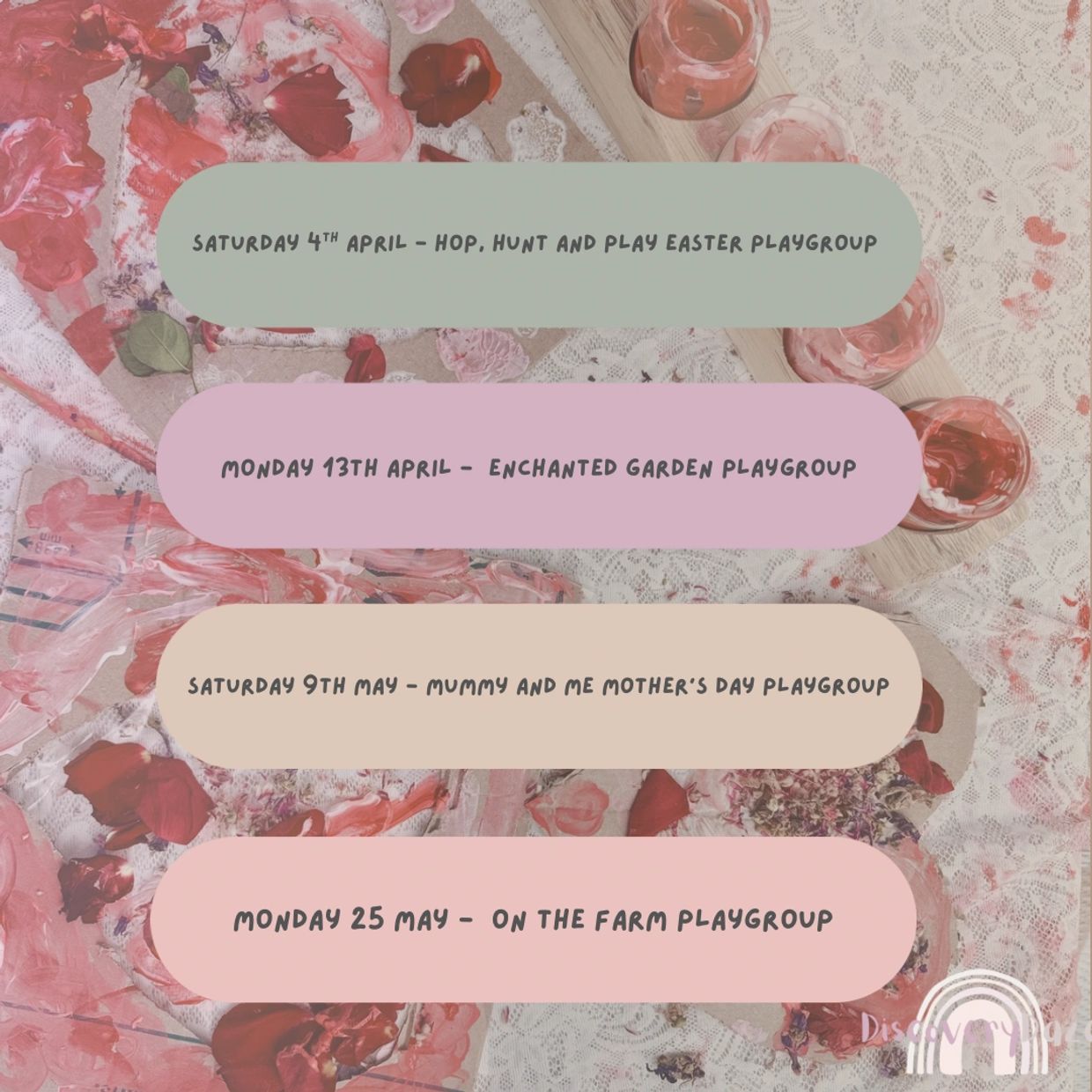 Welcome to our term 2 playgroups. We can't wait to play, explore and discover along side you all.